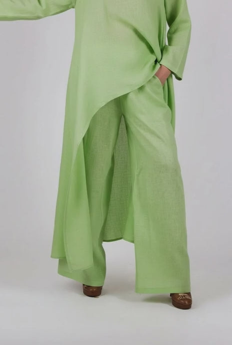 Complete your summer ensemble by pairing our JESIKA Wide Linen Pants with the matching Green Linen Top JESIKA. Together, they create a chic and coordinated look that exudes effortless style and comfort.
